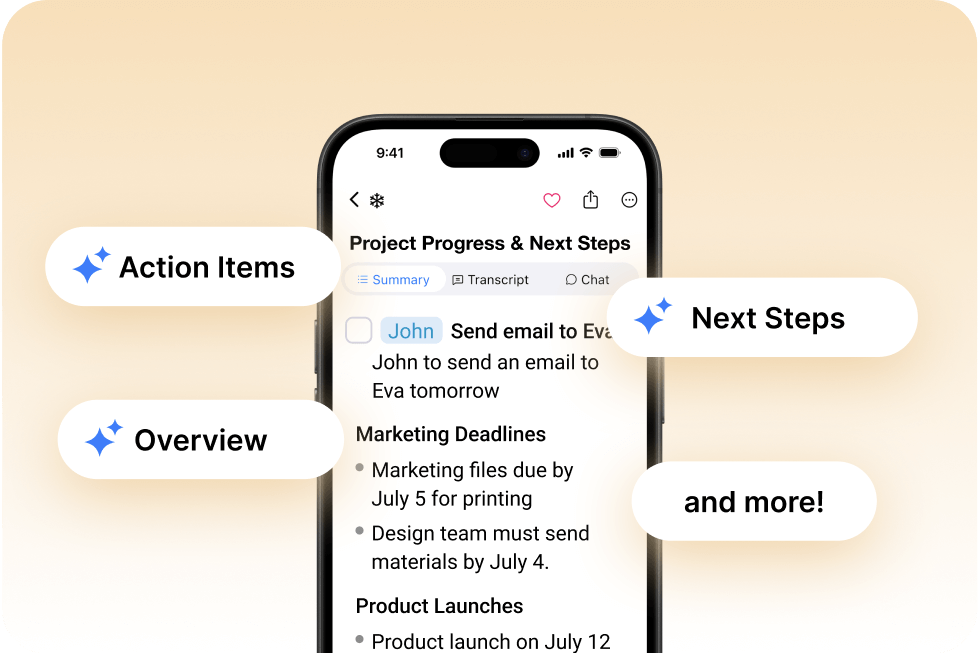 - Get a clean summary right after the meeting, with clear notes and action points.