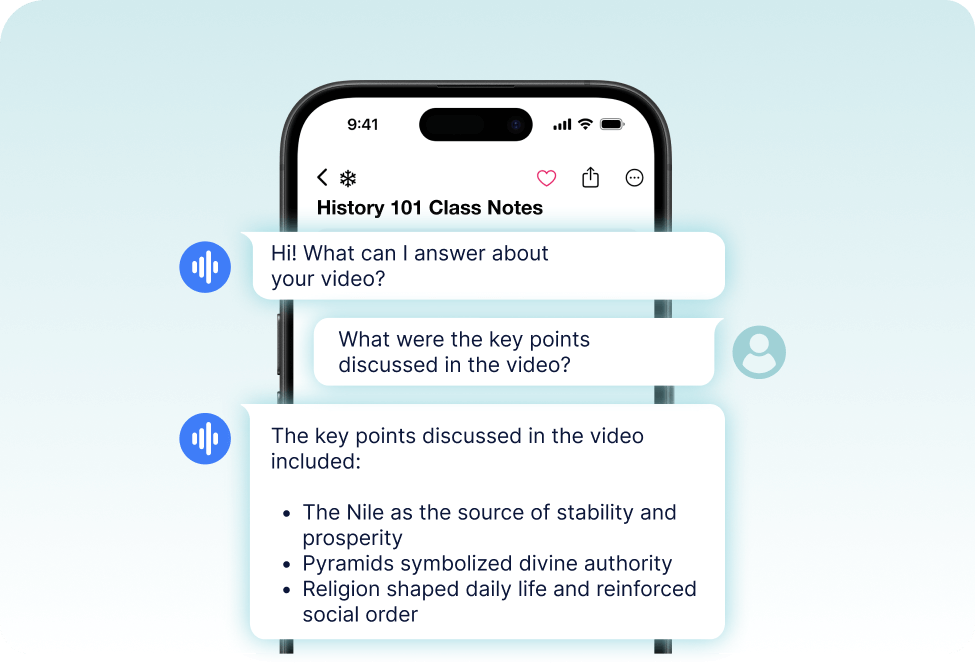 You have more questions? We’ve got you! Head to the AI Chat on your summary and ask any question related to the recording.