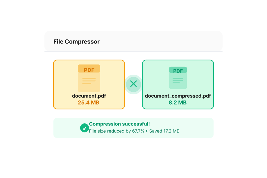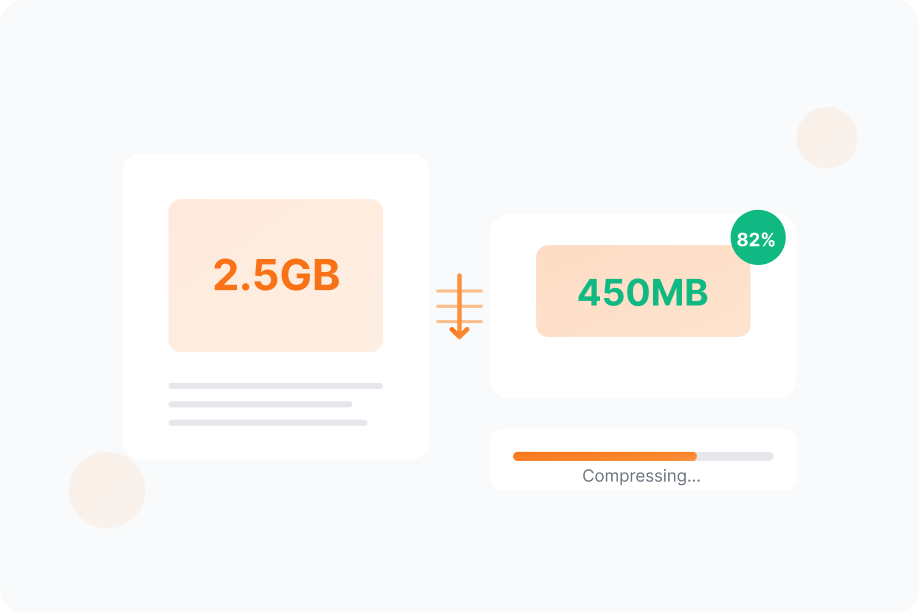 Make large video files smaller, without sacrificing visual quality. Perfect for uploading, sharing, or saving space while keeping your videos sharp and smooth.