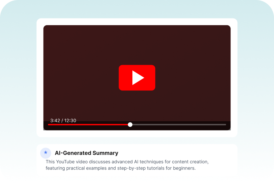 Paste a link and get a clear, structured summary that highlights the key ideas, main points, and important moments-so you can learn faster and stay focused.
