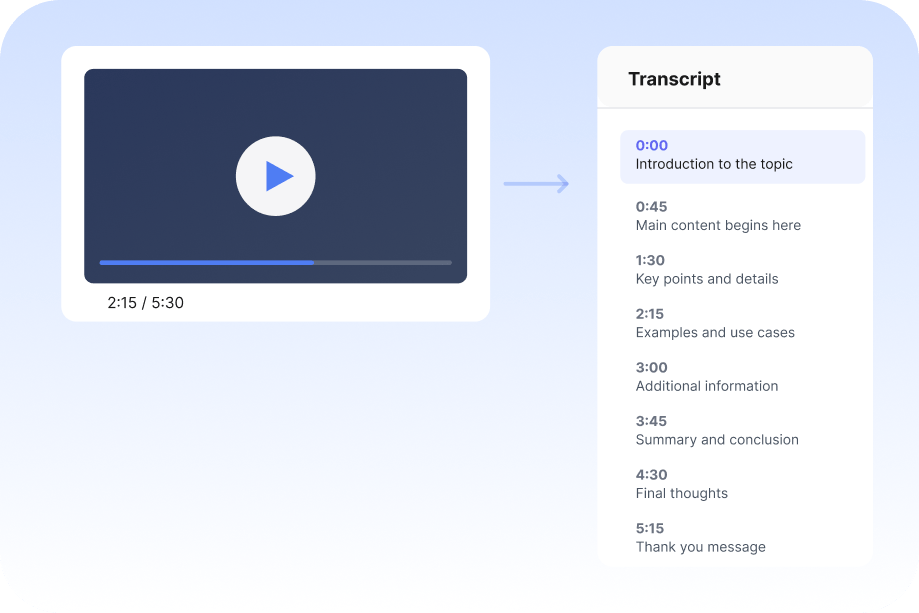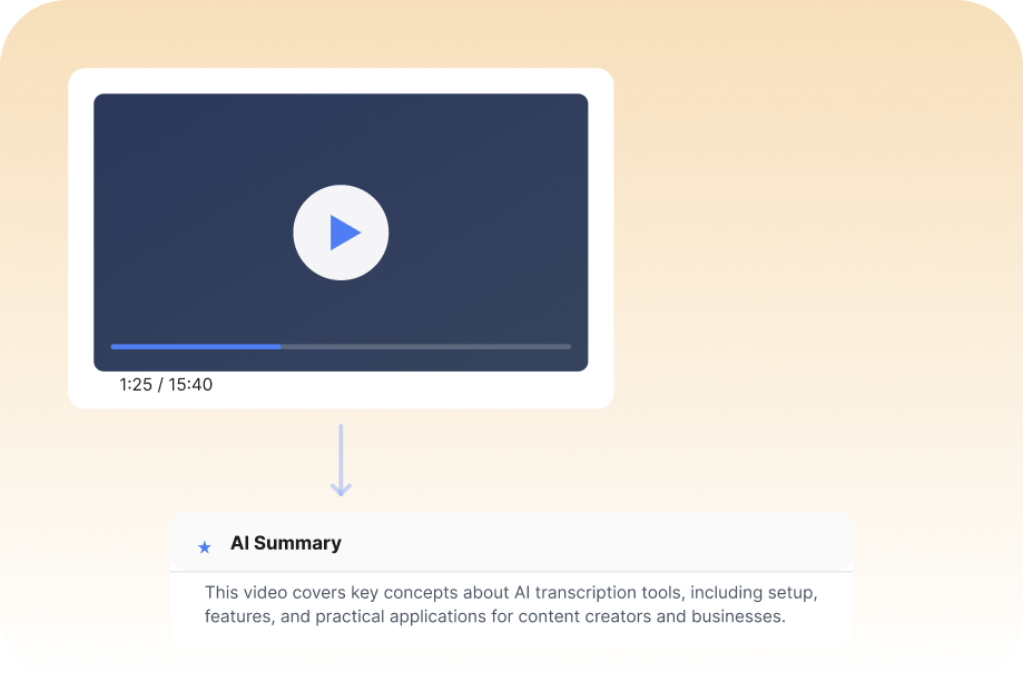 Summarize videos instantly with our AI video summarizer. Extract key points, main ideas, and important moments without watching the entire video.