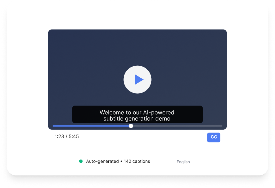 Our AI handles transcription, timing, and formatting – so you get ready-to-use subtitles without manual editing.