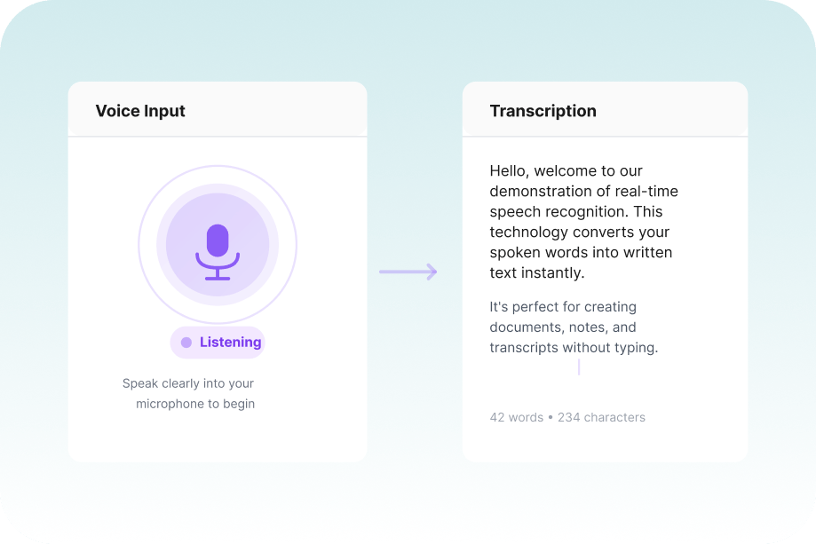 Capture your thoughts as you speak.Turn spoken words into accurate text in real time-perfect for notes, dictation, and quick ideas when typing isn’t convenient.