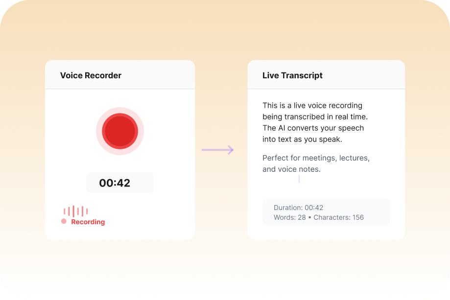 Turn spoken words into clean, accurate text as you speak. Designed for real-time use, this tool captures your voice and instantly converts it into structured text-perfect for dictation, notes, and accessibility.
